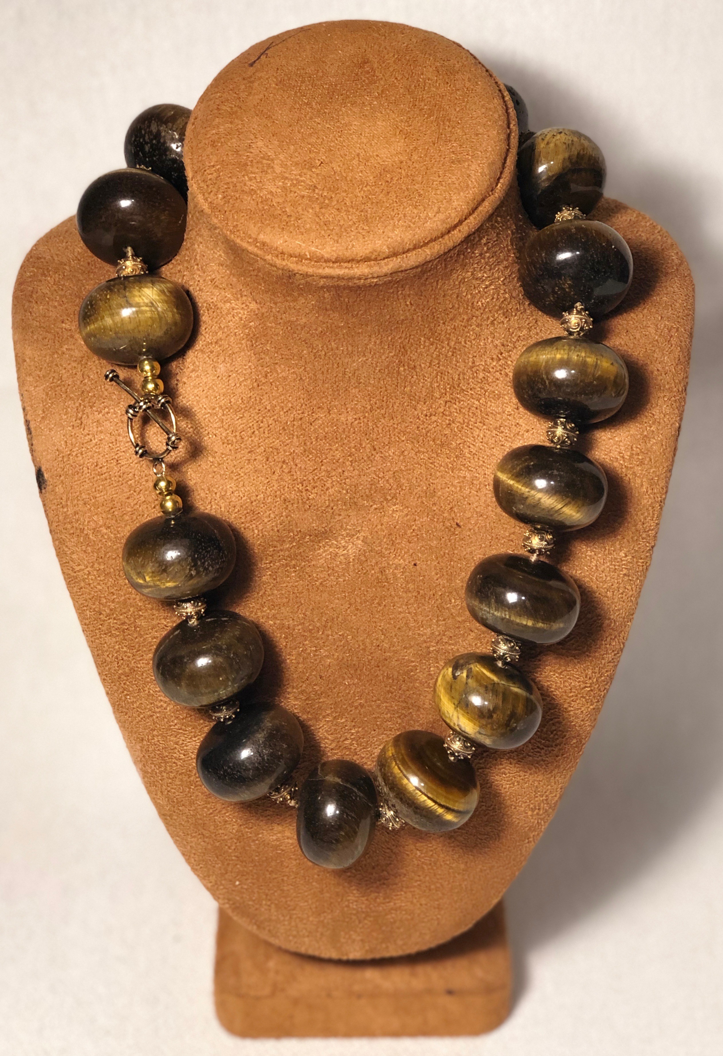 Unusually large 26MM tiger eye beads with bronze rondels. $625