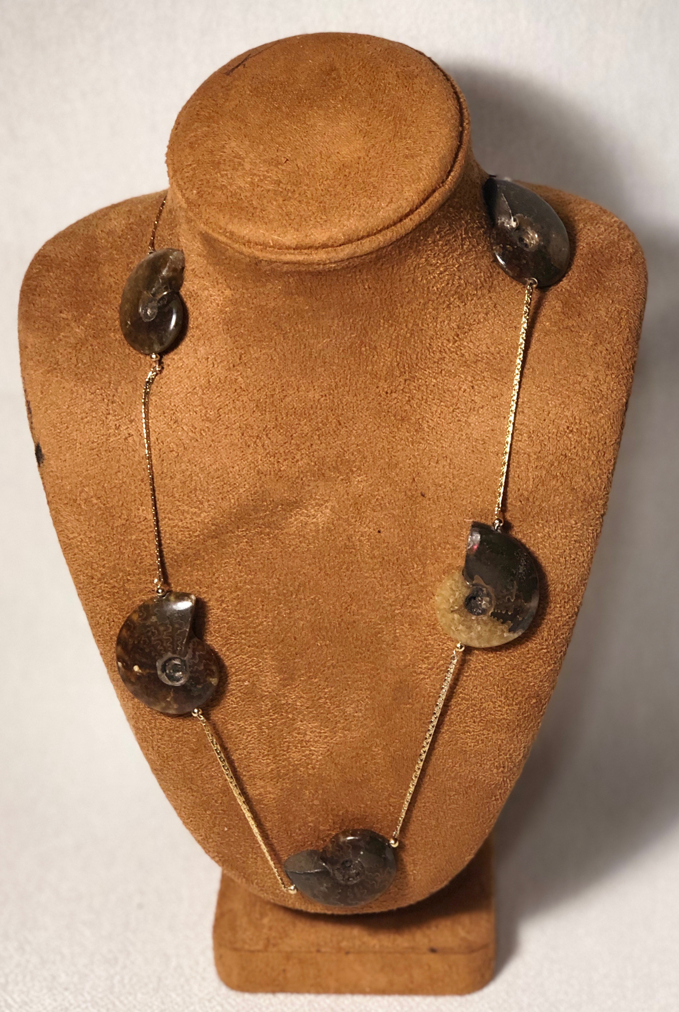 Lovely 35" 14K gold chain and Amonite necklace. $575