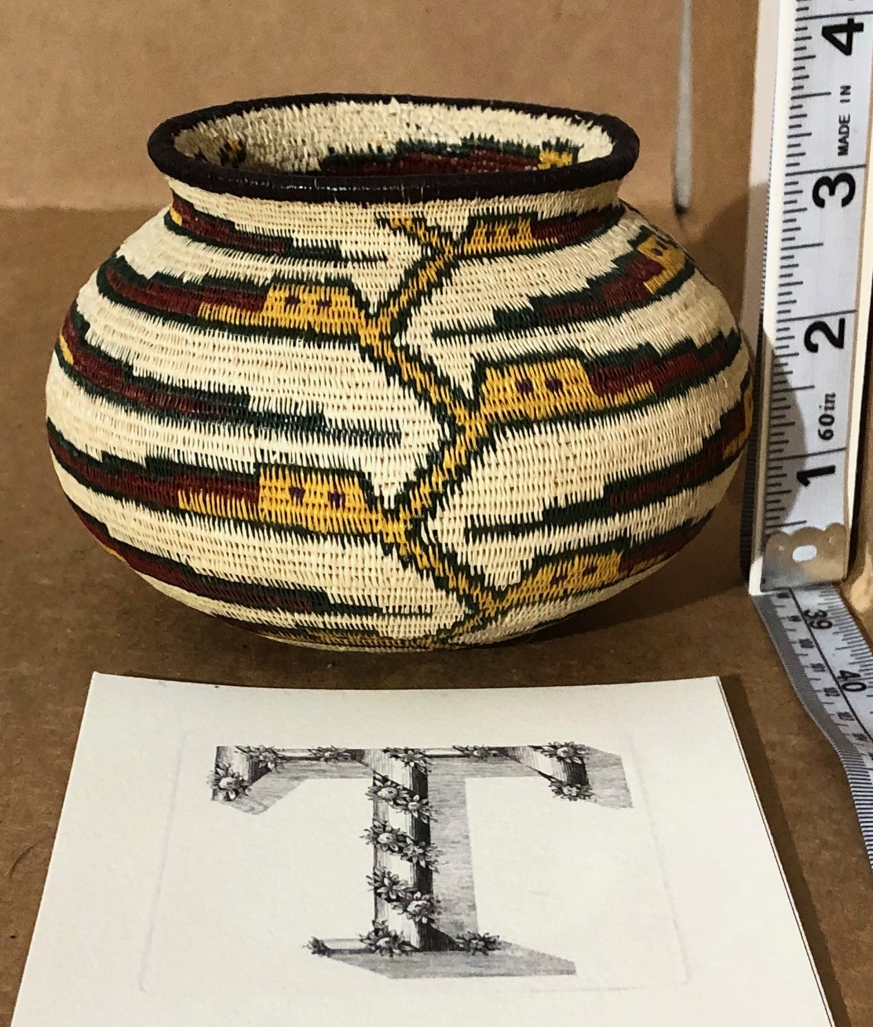 A lovely pattern of entertwined heliconia flowers banded around the basket. A unique manner of displaying heliconias. Colorful and bold. A very nice inexpensive basket.