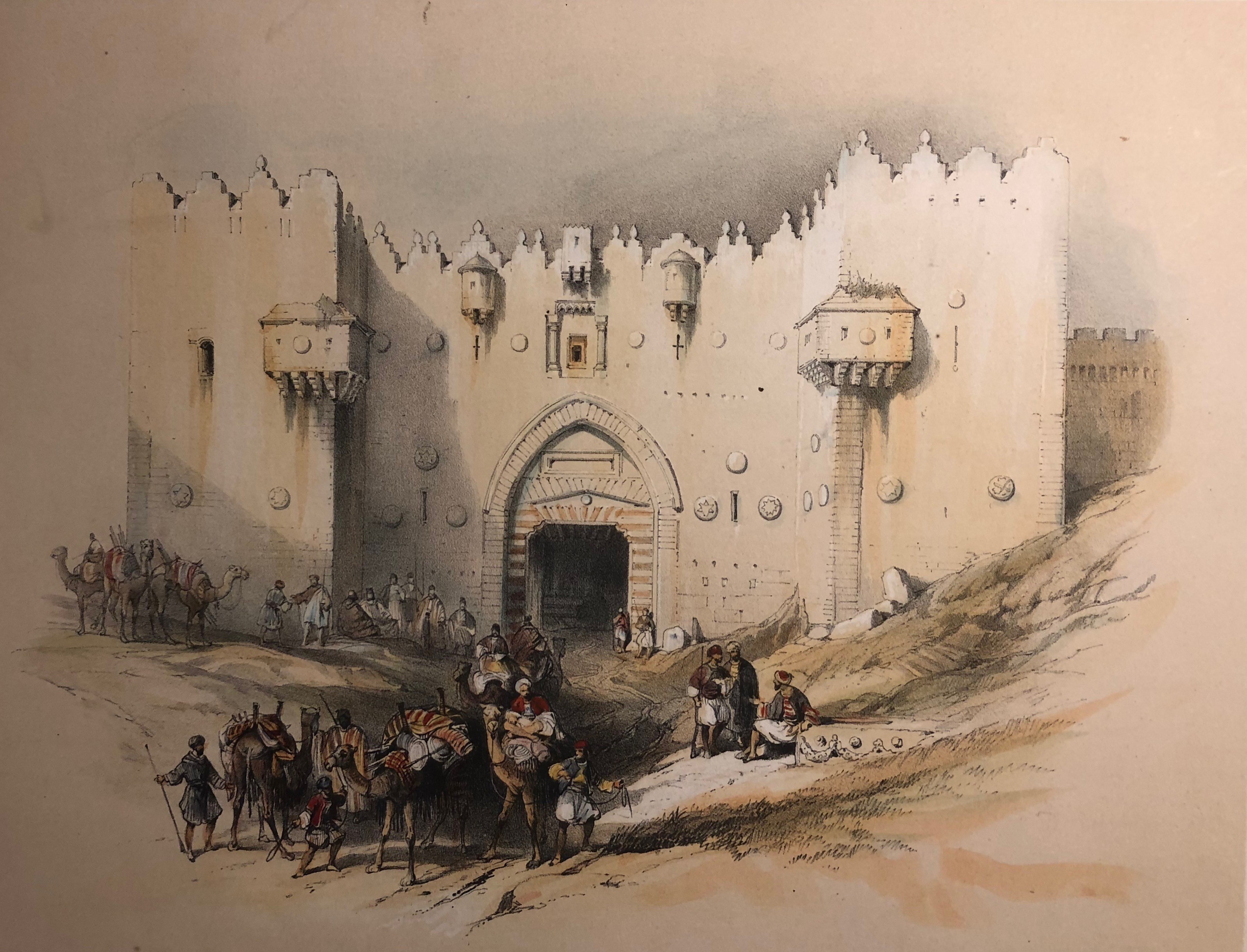 La Tere Sainte, Vues et Monuments is a set of Duo-tone lithographs done in 1852. The French were copying his images from his great set of lithographs (Views of Egypt, Nubia, and the Holy Land). To counter this he published this set of lithographs in Brussels. The images are identical to those in the English edition but in small folio form.