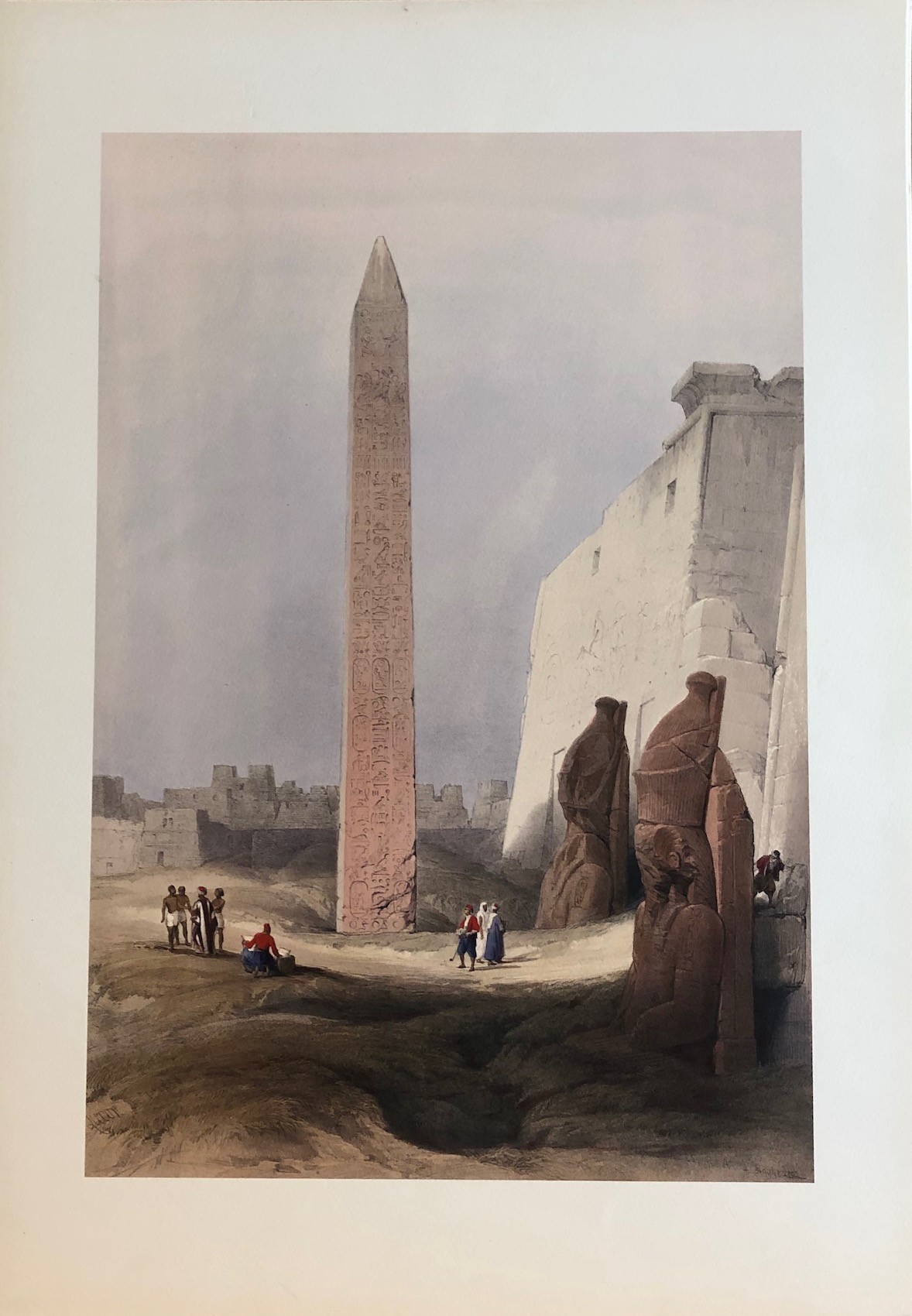 Views of Egypt, Nubia, and the Holy Land, Duo-Tone Lithograph with hand finishing. Published London 1842-49. This set of 250 images of Egypt and the Holy Land was and is considered the greatest lithographic work of the 19th century. Each image was first printed in b/w, then two additional printings were done in sepia, and blue or green, with several images printed a fourth time in red. After printing, the images were hand finished by a team of water colour artists to bring the prints to a lifelike state. If you ordered the set it would then take you 7 years to receive all 250 images. At that time you would go to your bookbinder and have the prints bound as you wished. The images have always been very desirable and are becoming very rare as sets are being broken and the prints sold off.