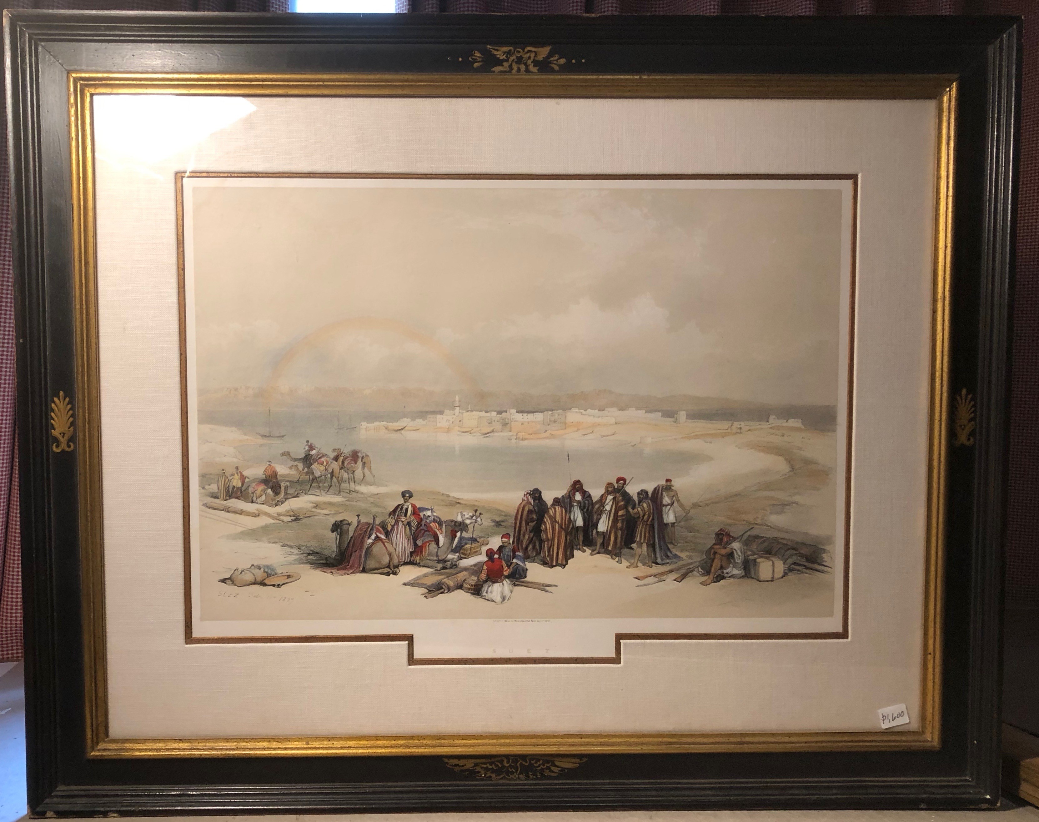 Views of Egypt, Nubia, and the Holy Land, Duo-Tone Lithograph with hand finishing. Published London 1842-49. This set of 250 images of Egypt and the Holy Land was and is considered the greatest lithographic work of the 19th century. Each image was first printed in b/w, then two additional printings were done in sepia, and blue or green, with several images printed a fourth time in red. After printing, the images were hand finished by a team of water colour artists to bring the prints to a lifelike state. If you ordered the set it would then take you 7 years to receive all 250 images. At that time you would go to your bookbinder and have the prints bound as you wished. The images have always been very desirable and are becoming very rare as sets are being broken and the prints sold off.