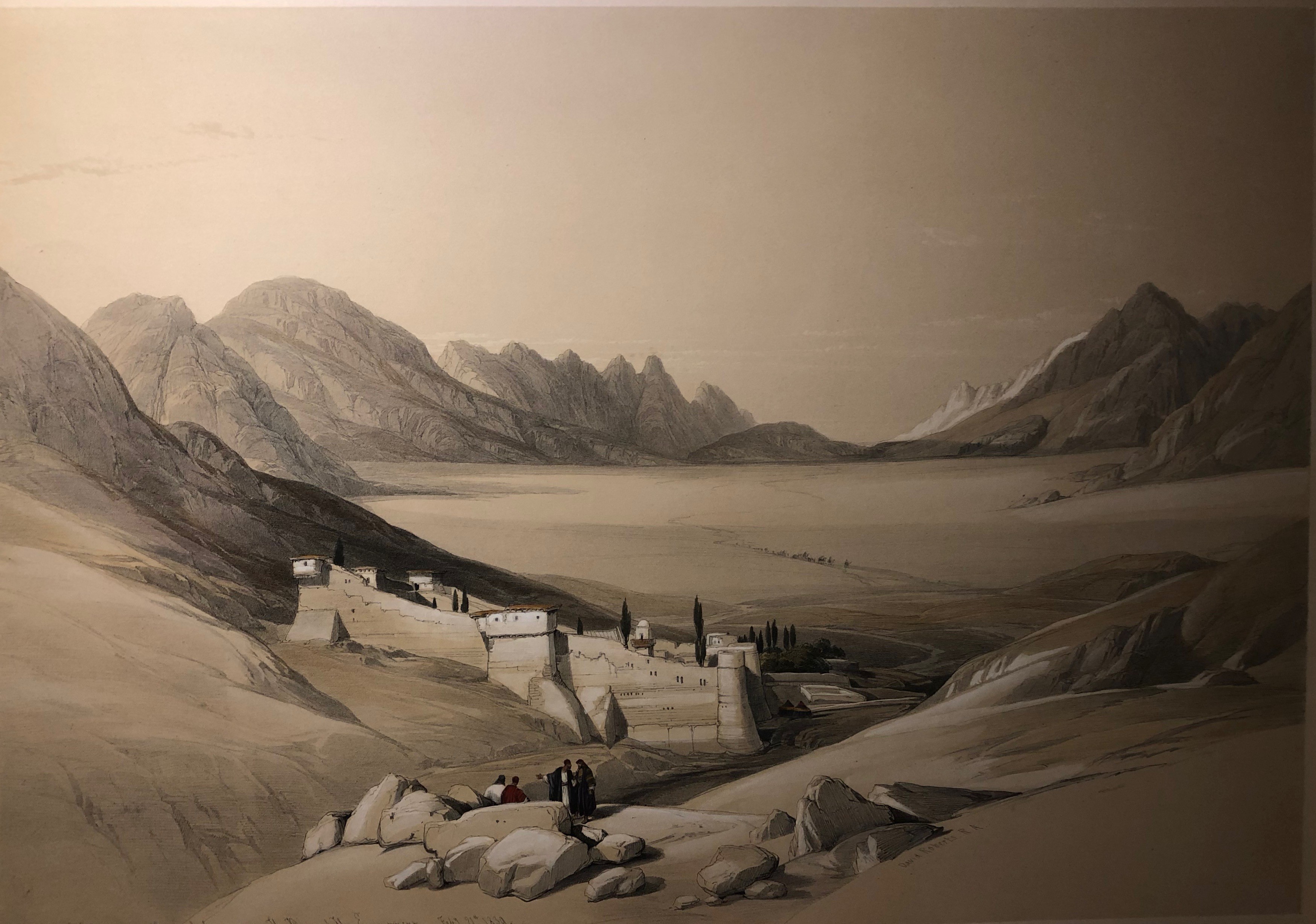 Views of Egypt, Nubia, and the Holy Land, Duo-Tone Lithograph with hand finishing. Published London 1842-49.  This set of 250 images of Egypt and the Holy Land was and is considered the greatest lithographic work of the 19th century.  Each image was first printed in b/w, then two additional printings were done in sepia, and blue or green, with several images printed a fourth time in red.  After printing, the images were hand finished by a team of water colour artists to bring the prints to a lifelike state.  If you ordered the set it would then take you 7 years to receive all 250 images.  At that time you would go to your bookbinder and have the prints bound as you wished.  The images have always been very desirable and are becoming very rare as sets are being broken and the prints sold off.