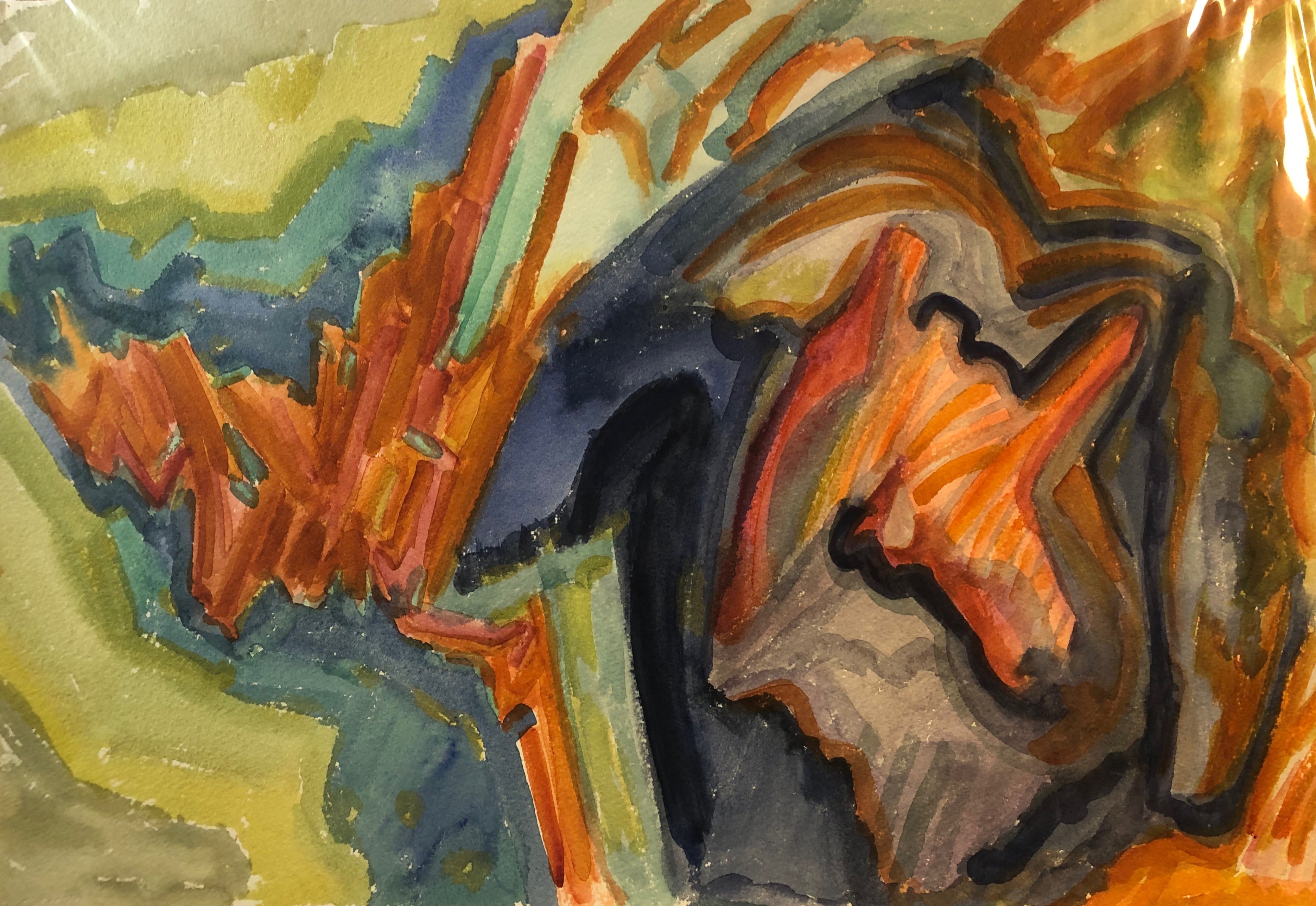Water color on paper. Size 14 1/2 x 22.