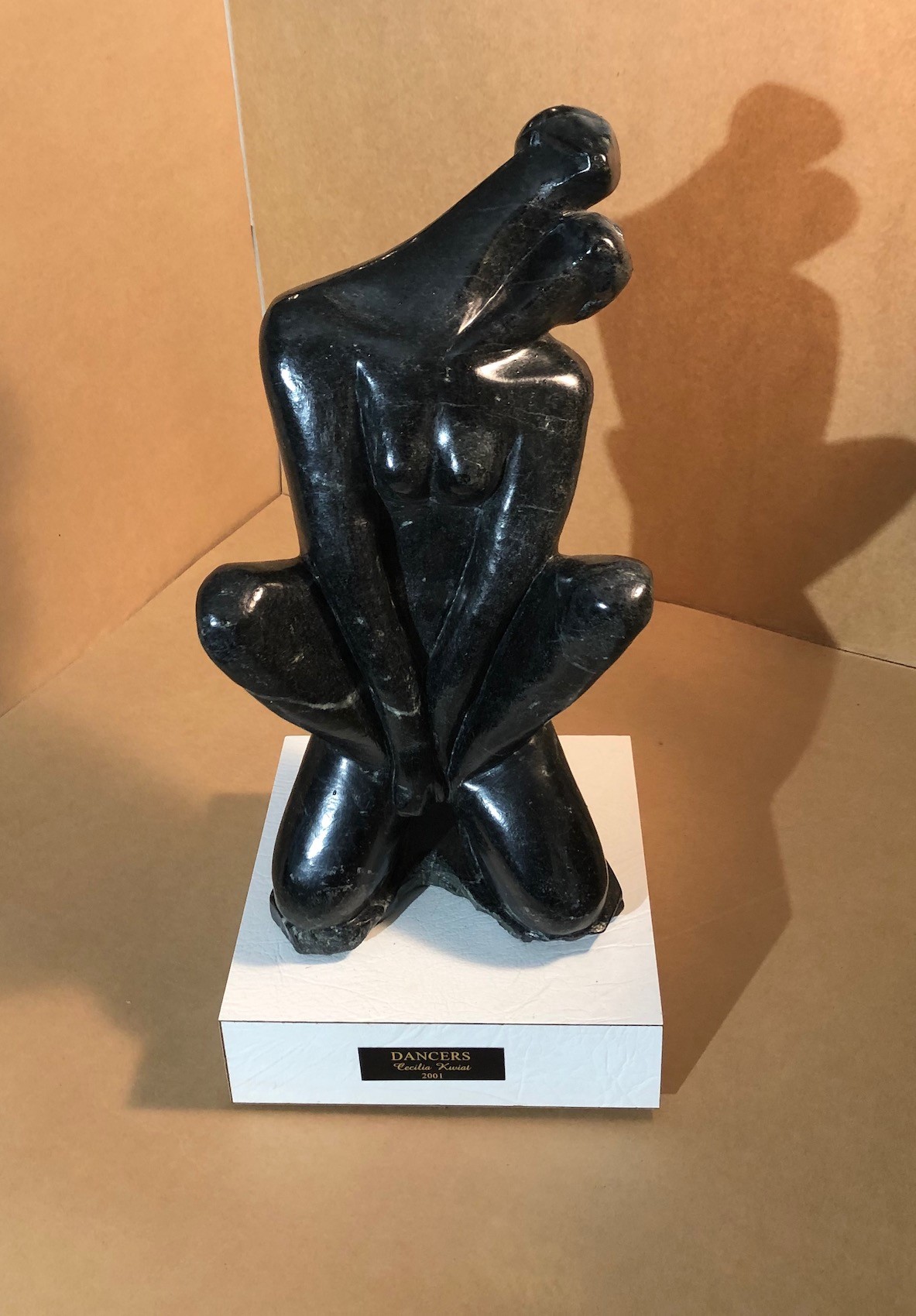 A lovely, large, black marble piece of two dansers mounted of rotating base. 19 1/2 " tall.