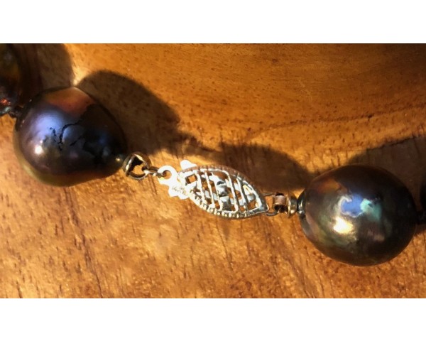 DM 12-Peacock coloured Baroque Pearls w14K Filagree Clasp. $650.