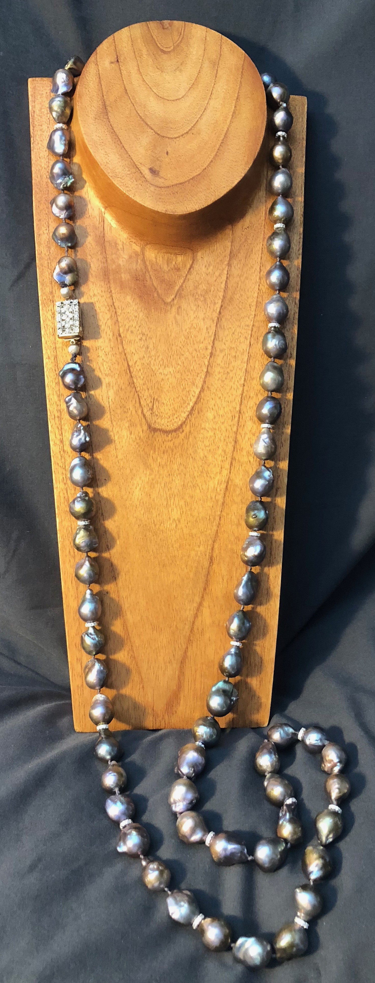 DM 13-56" Long Slate GreyBaroque Pearls wi14K Gold & Diamond Clasp. $5200. Wow! What a statement these beautiful pearls make!!!