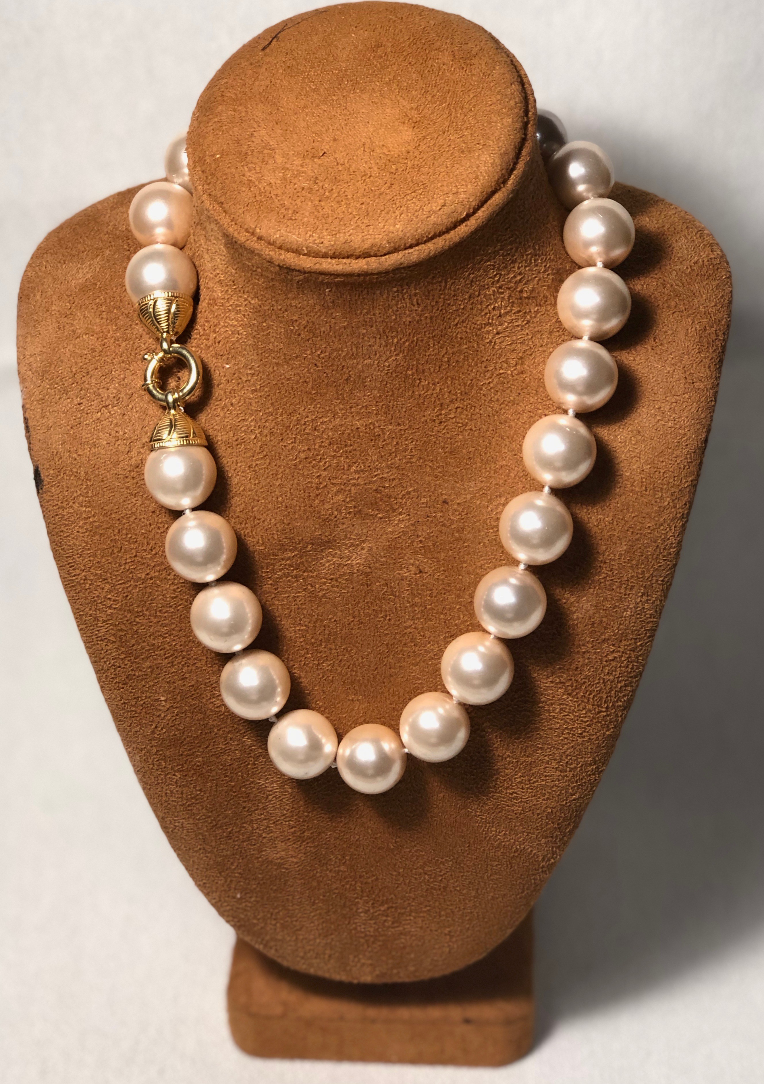 19" long 20mm Blush,Shell Pearl Necklace with gold filled clasp. $625