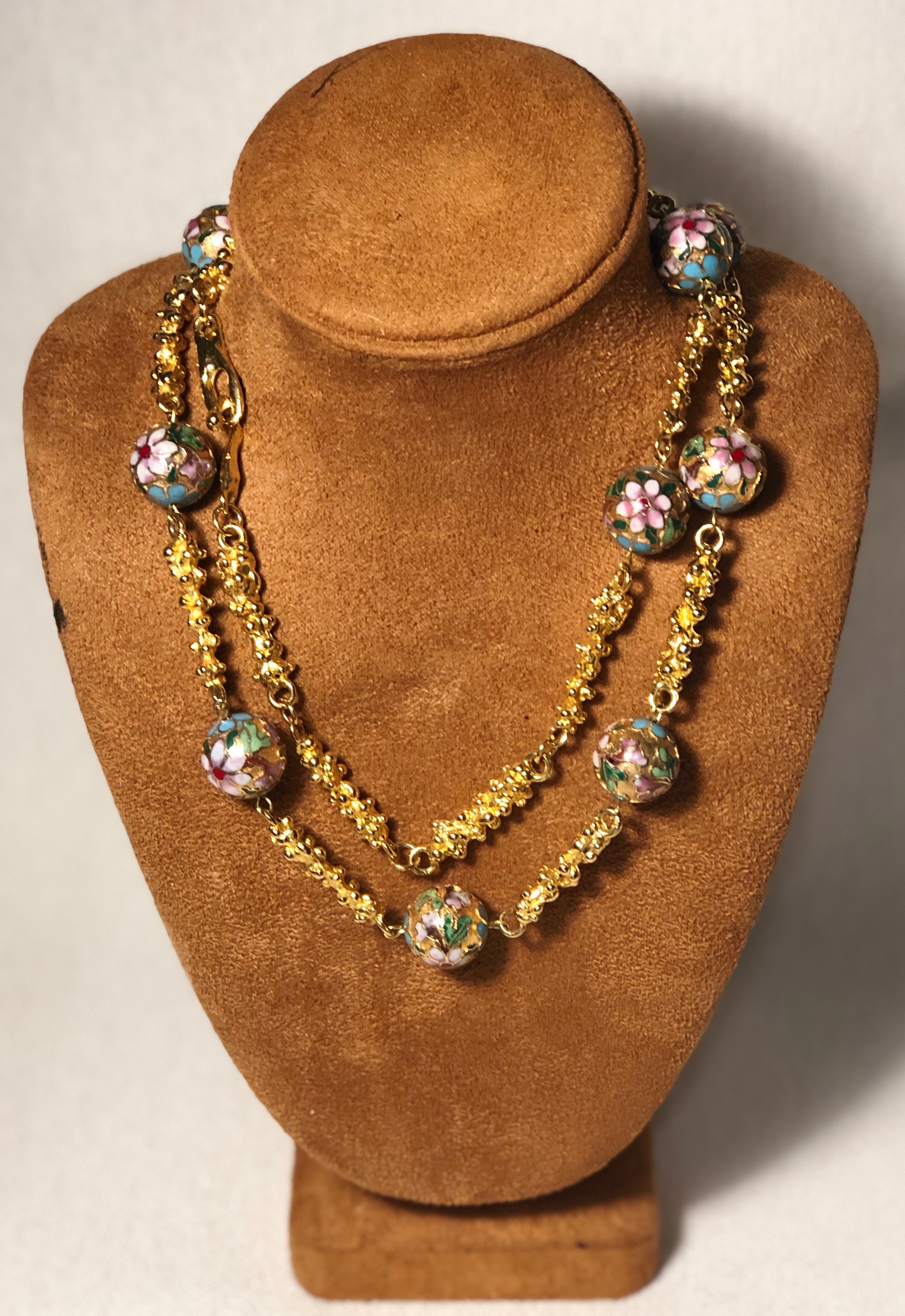 A very nice 37" Cloisenee necklace with a beautiful gold filled baroque chain. $475