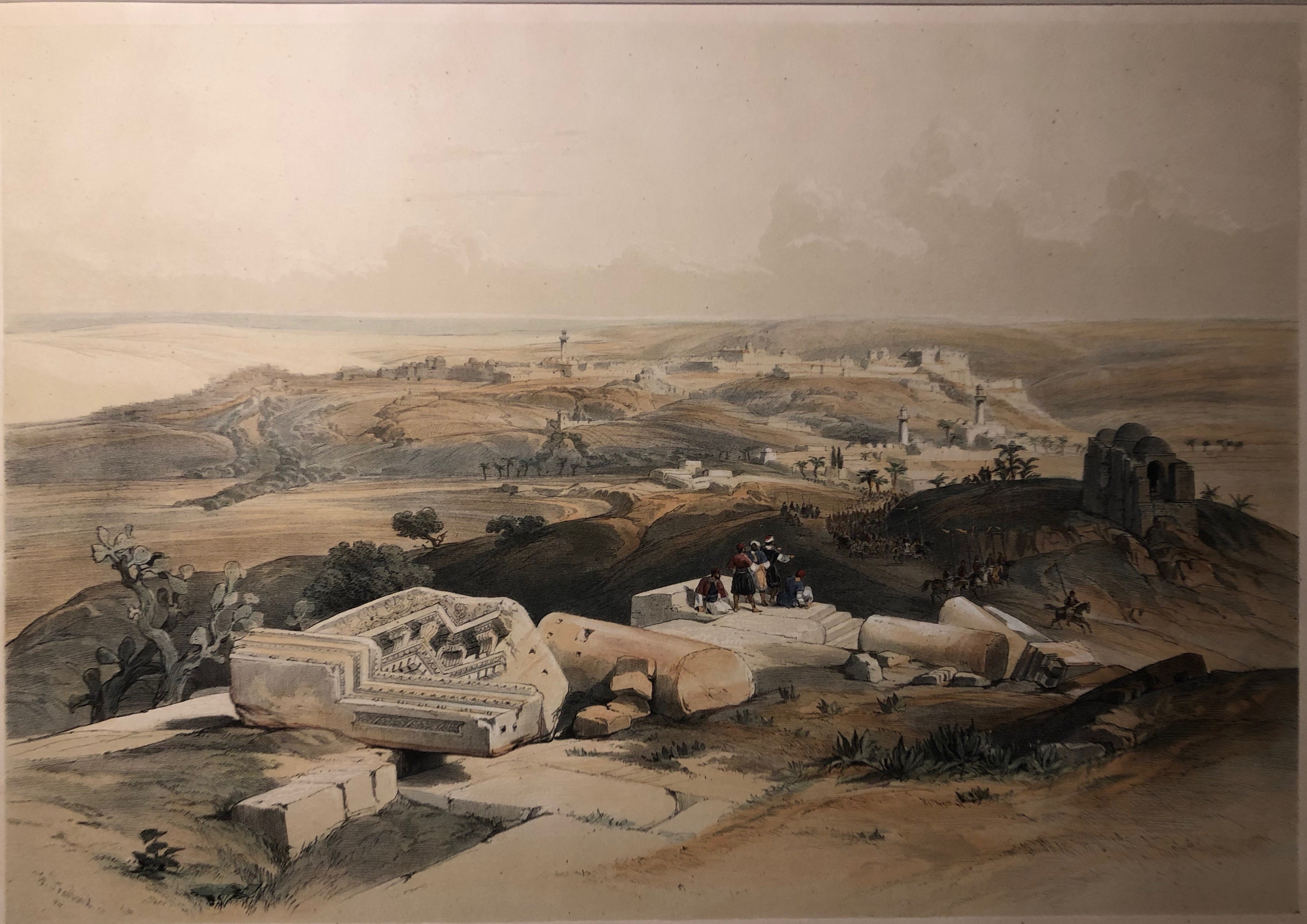 La Tere Sainte, Vues et Monuments is a set of Duo-tone lithographs done in 1852. The French were copying his images from his great set of lithographs (Views of Egypt, Nubia, and the Holy Land). To counter this he published this set of lithographs in Brussels. The images are identical to those in the English edition but in small folio form.
