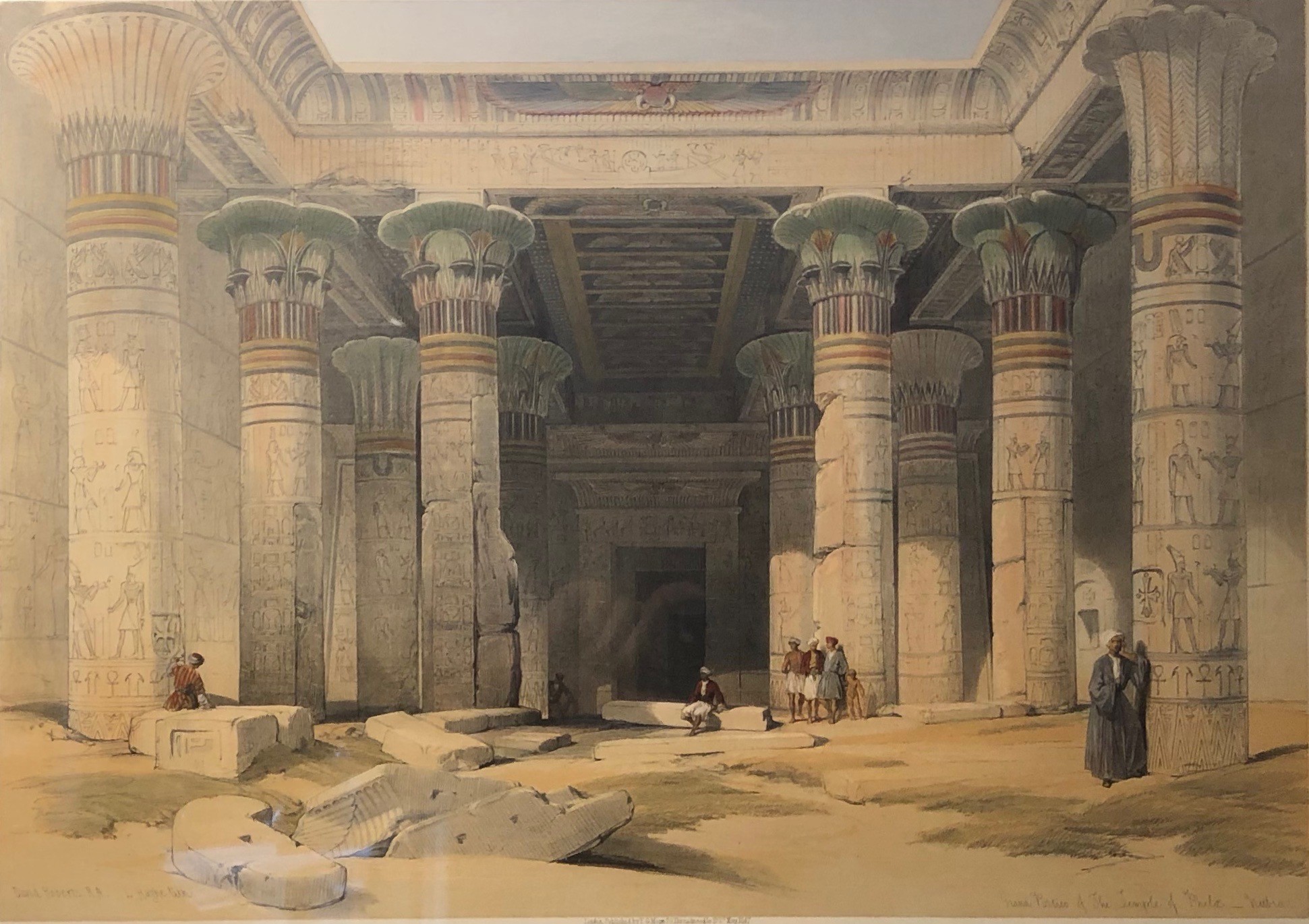 Views of Egypt, Nubia, and the Holy Land, Duo-Tone Lithograph with hand finishing. Published London 1842-49.  This set of 250 images of Egypt and the Holy Land was and is considered the greatest lithographic work of the 19th century.  Each image was first printed in b/w, then two additional printings were done in sepia, and blue or green, with several images printed a fourth time in red.  After printing, the images were hand finished by a team of water colour artists to bring the prints to a lifelike state.  If you ordered the set it would then take you 7 years to receive all 250 images.  At that time you would go to your bookbinder and have the prints bound as you wished.  The images have always been very desirable and are becoming very rare as sets are being broken and the prints sold off.