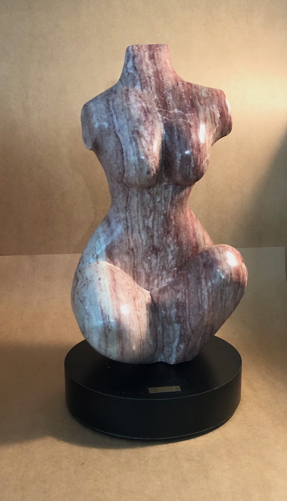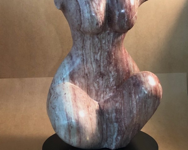 Marble statue of nude entitled "I wish" by Cecilia Kwiat. Expertly carved by well know Florida artist, Cecilia Kwiat in red marble. 22" tall on rotating base. Finished on all sides.