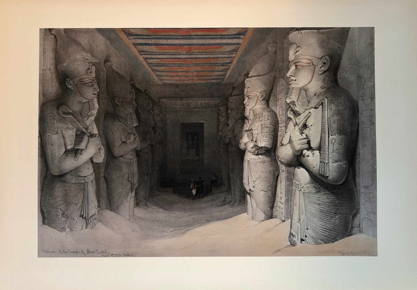 Views of Egypt, Nubia, and the Holy Land, Duo-Tone Lithograph with hand finishing. Published London 1842-49.  This set of 250 images of Egypt and the Holy Land was and is considered the greatest lithographic work of the 19th century.  Each image was first printed in b/w, then two additional printings were done in sepia, and blue or green, with several images printed a fourth time in red.  After printing, the images were hand finished by a team of water colour artists to bring the prints to a lifelike state.  If you ordered the set it would then take you 7 years to receive all 250 images.  At that time you would go to your bookbinder and have the prints bound as you wished.  The images have always been very desirable and are becoming very rare as sets are being broken and the prints sold off.