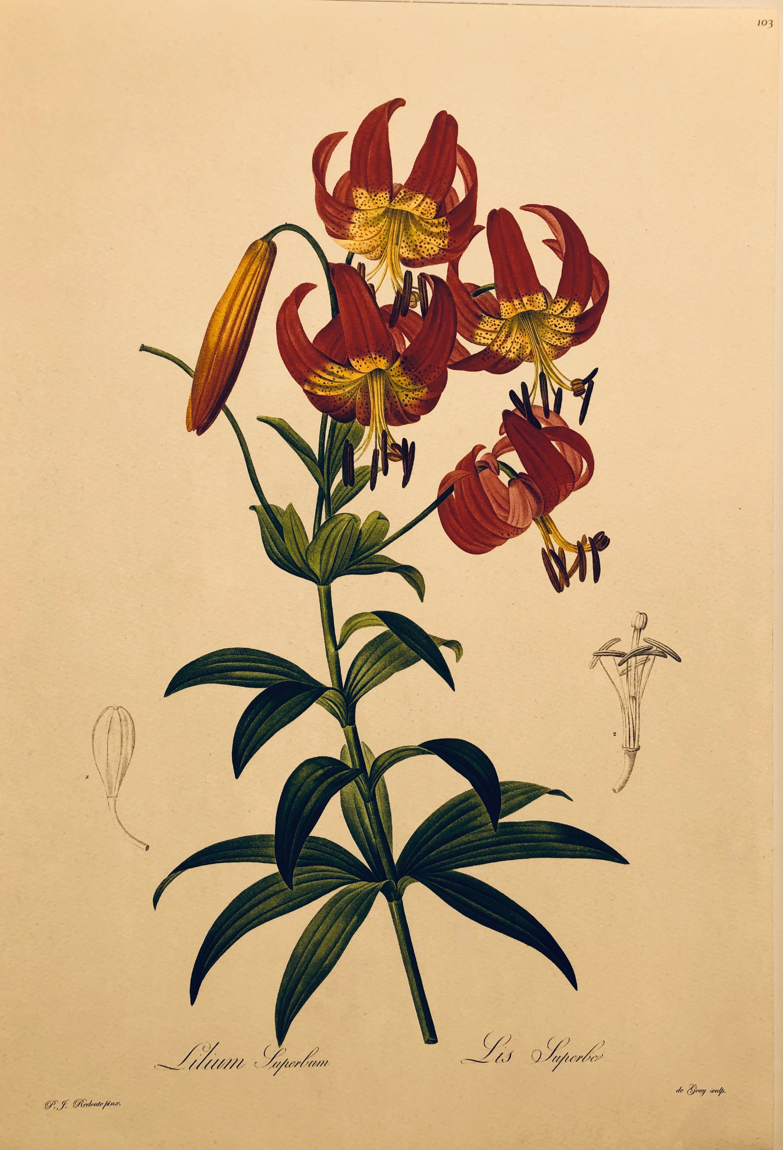 We have published here a number of the flowers from “ Liliacees” and “Most Beautiful Flowers” in Giclee.  We only use the finest of archival papers and inks in our publications.  These are 12 x 16 inches in size but can be printed to any size your wish.  These are $55 each.