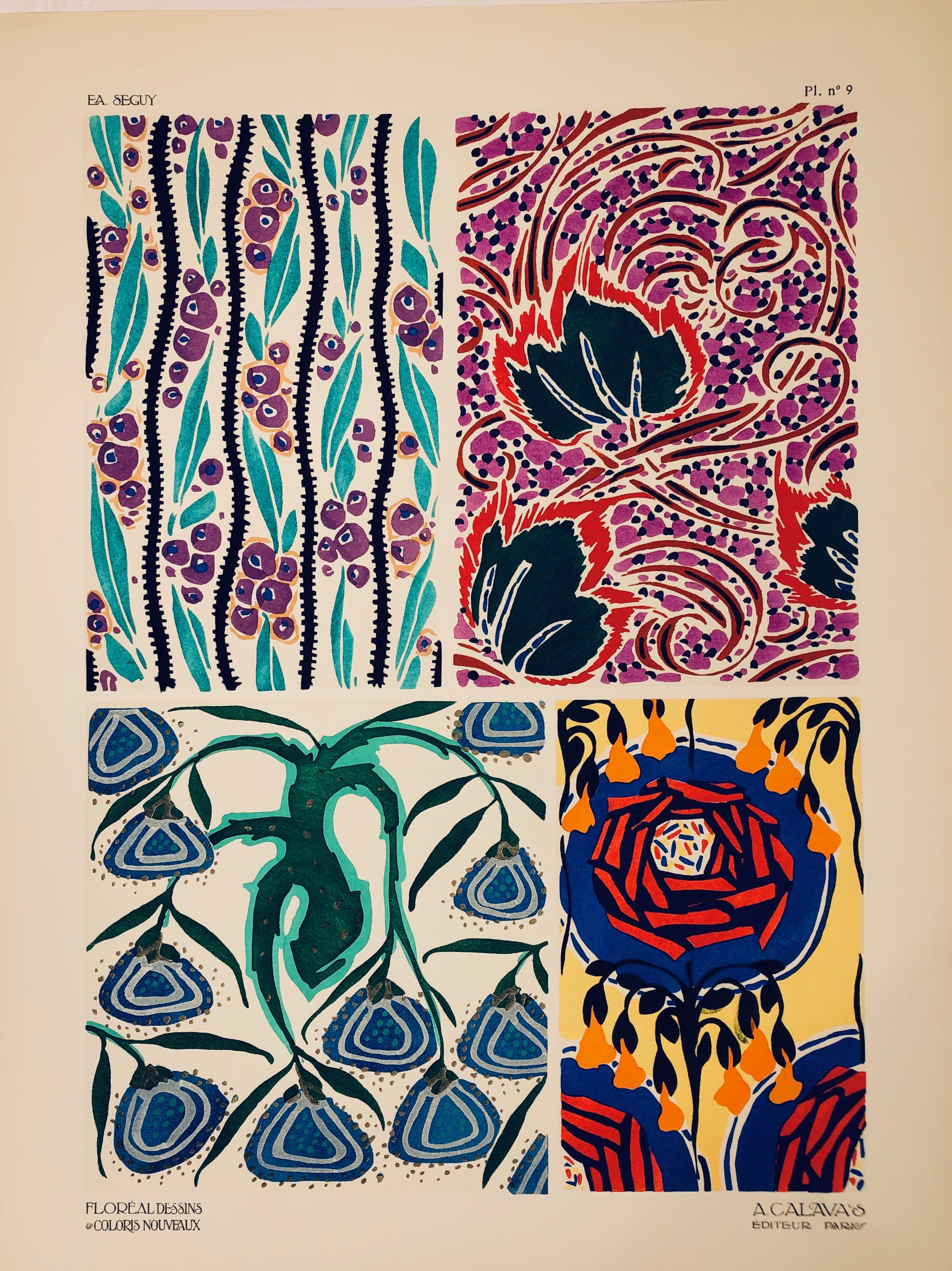 Emile-Allain Séguy, known as E.A. Seguy and not to be confused with Eugene Séguy an entomologist of the same period, was a French designer of the 1920’s and 30’s.  He worked extensively in a printing process known as Pochoir (a stencil printed process with each stencil being used for each different colour).