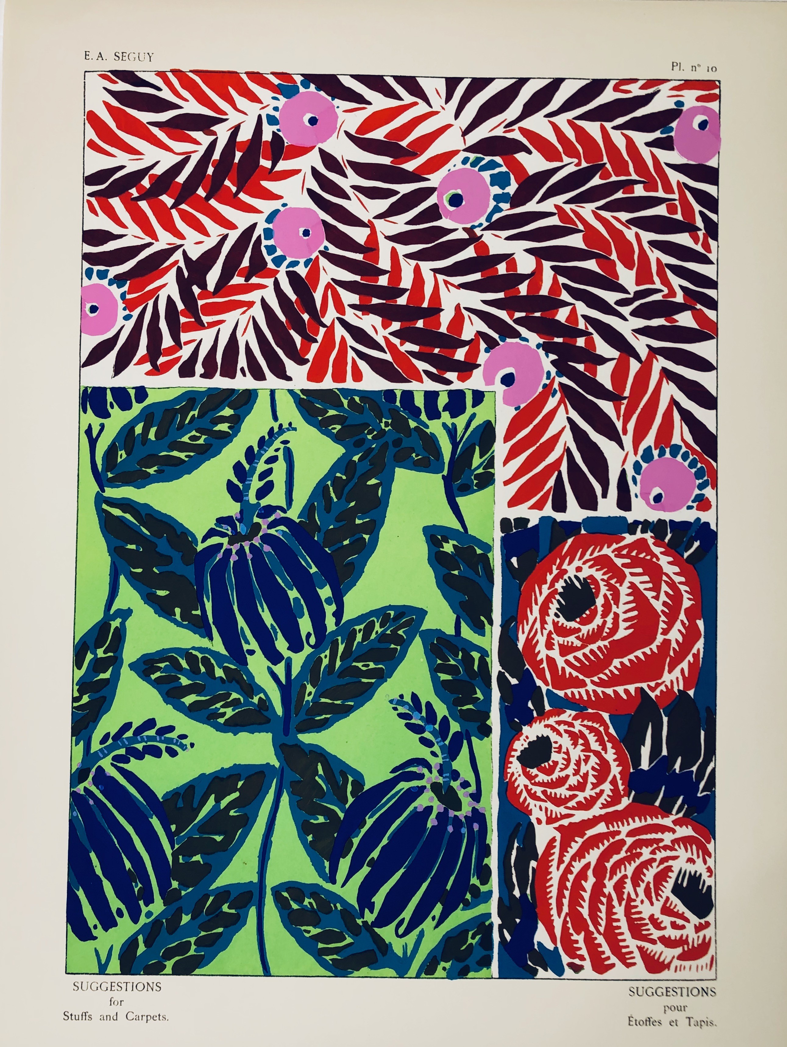 Emile-Allain Séguy, known as E.A. Seguy and not to be confused with Eugene Séguy an entomologist of the same period, was a French designer of the 1920’s and 30’s.  He worked extensively in a printing process known as Pochoir (a stencil printed process with each stencil being used for each different colour).