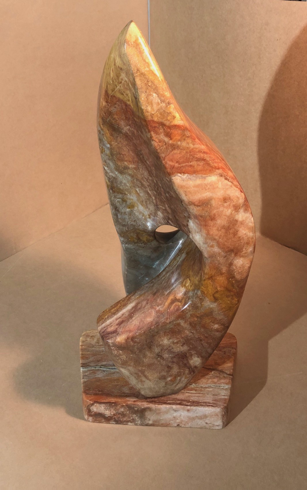 Carved of Red Marble on Marble base. 22" tall.