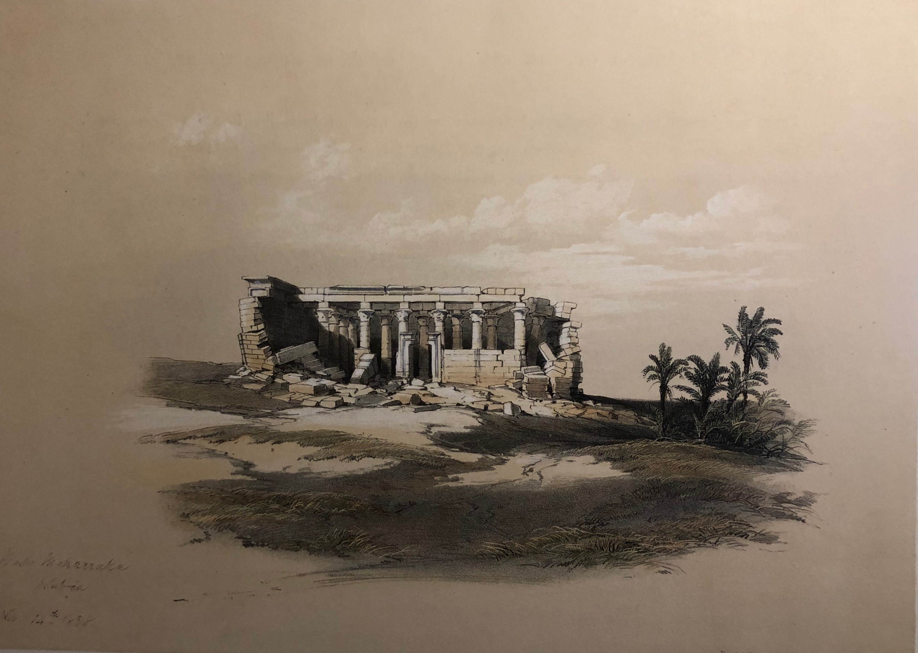 Views of Egypt, Nubia, and the Holy Land, Duo-Tone Lithograph with hand finishing. Published London 1842-49. This set of 250 images of Egypt and the Holy Land was and is considered the greatest lithographic work of the 19th century. Each image was first printed in b/w, then two additional printings were done in sepia, and blue or green, with several images printed a fourth time in red. After printing, the images were hand finished by a team of water colour artists to bring the prints to a lifelike state. If you ordered the set it would then take you 7 years to receive all 250 images. At that time you would go to your bookbinder and have the prints bound as you wished. The images have always been very desirable and are becoming very rare as sets are being broken and the prints sold off.