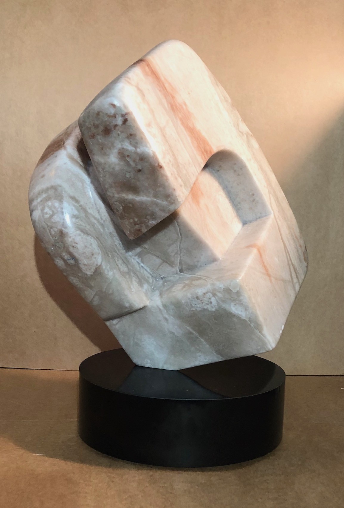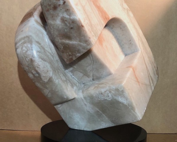 Marble sculpture, 19 1/2 inches tall by Cecilia Kwiat. Mounted on rotating base. Deeply carved piece from all sides. Dramatic and commanding piece of sculpture