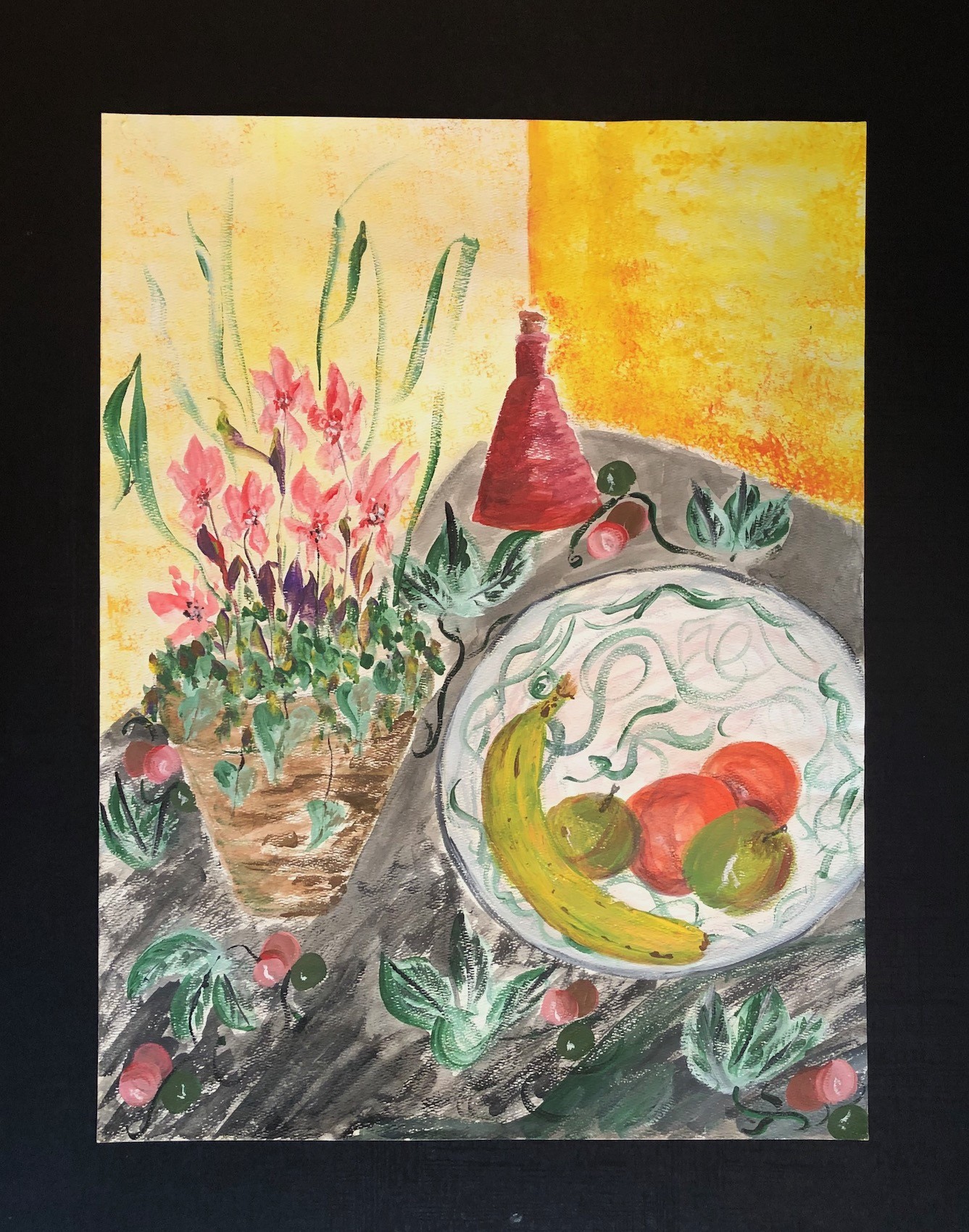 An early 20th century watercolor on paper of an inpressionist still life. Unsigned. Great size (18 x 24"). Framed.