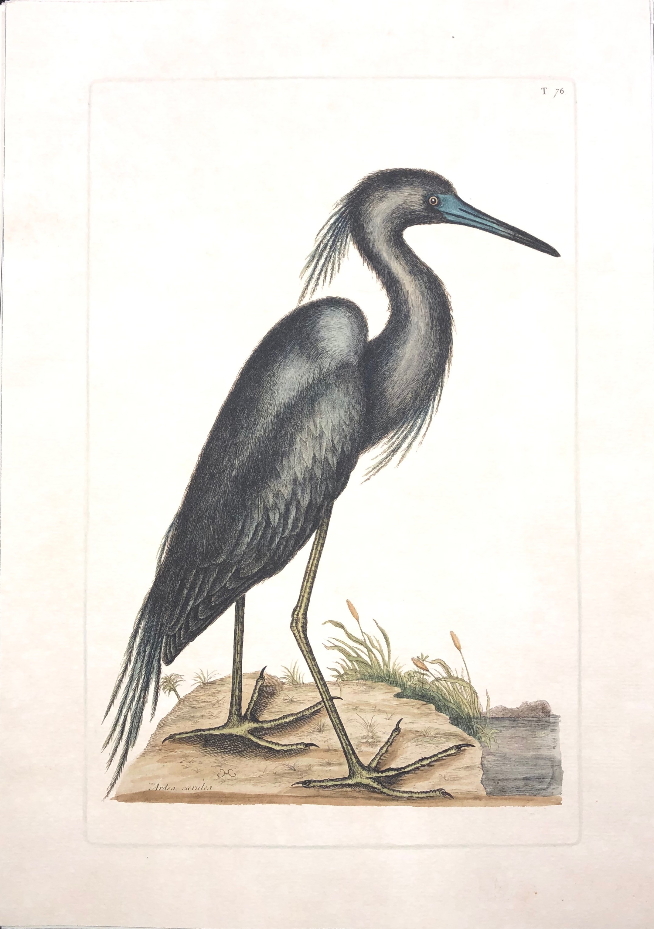 Catesby was an English naturalist who made two trips to the new world early in the 18th century and returned home to complete his “Natural History of Carolina, Florida, and the Bahama Islands”.  Published in 1731, it was the first natural history to describe and illustrate the flora and fauna of the southeastern part of Colonial America.  It is considered to be the most important colour plate book ever published on America.  Another naturalist saw a copy of this work and was inspired to do another publication on the birds of America.  This was John James Audubon who did his “Birds of America” with the birds painted full size.