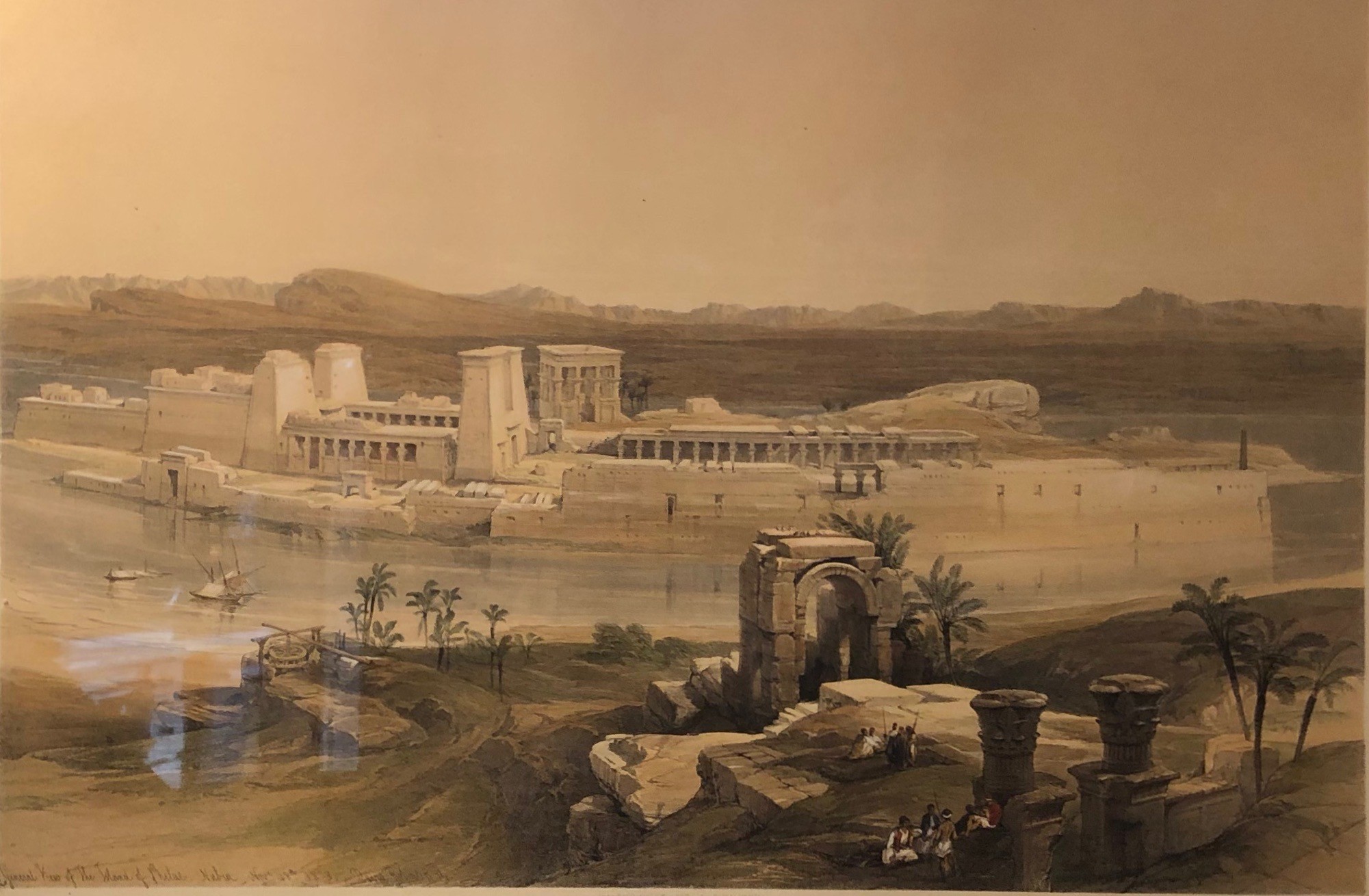Views of Egypt, Nubia, and the Holy Land, Duo-Tone Lithograph with hand finishing. Published London 1842-49.  This set of 250 images of Egypt and the Holy Land was and is considered the greatest lithographic work of the 19th century.  Each image was first printed in b/w, then two additional printings were done in sepia, and blue or green, with several images printed a fourth time in red.  After printing, the images were hand finished by a team of water colour artists to bring the prints to a lifelike state.  If you ordered the set it would then take you 7 years to receive all 250 images.  At that time you would go to your bookbinder and have the prints bound as you wished.  The images have always been very desirable and are becoming very rare as sets are being broken and the prints sold off.